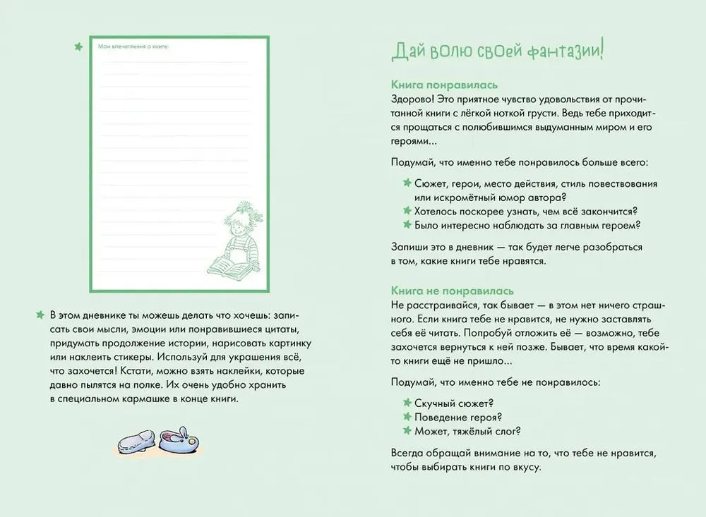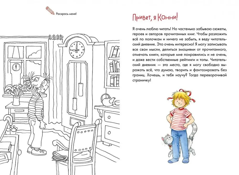 Читательский дневник от любимой героини Конни — это не просто творческий блокнот, с его помощью ребёнок учится свободно выражать свои мысли, анализировать прочитанное и лучше понимать себя. Подробные советы в начале дневника и подсказки на каждой странице объяснят ребёнку, как вести дневник, о чём писать и на что обращать внимание. Пишите, рисуйте, клейте стикеры и читайте с умом!